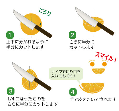 ネーブルなどオレンジは、みかんのように手で簡単にはむけません。